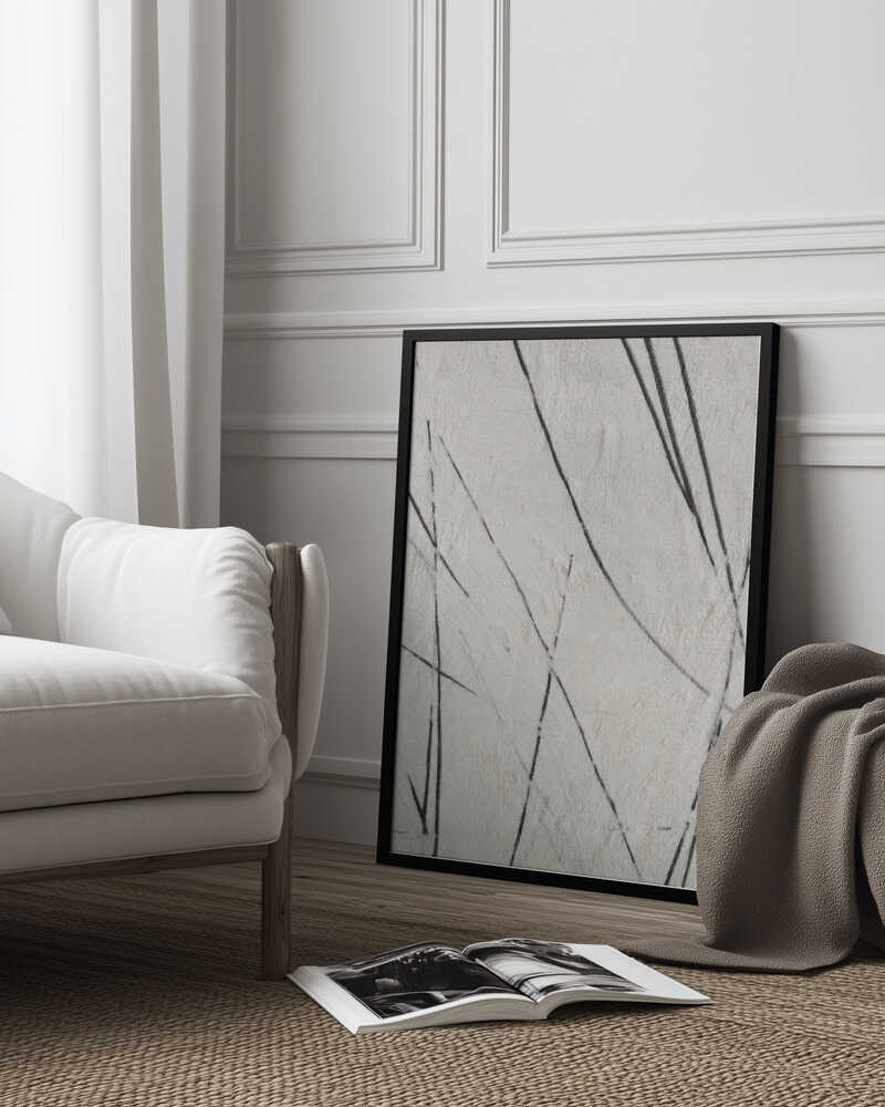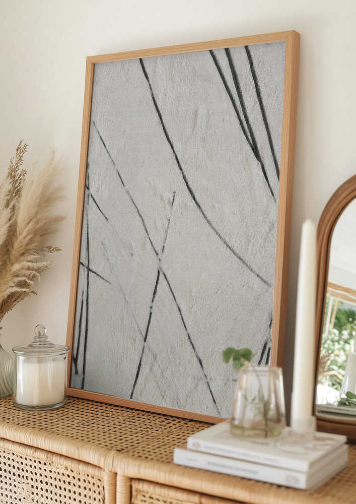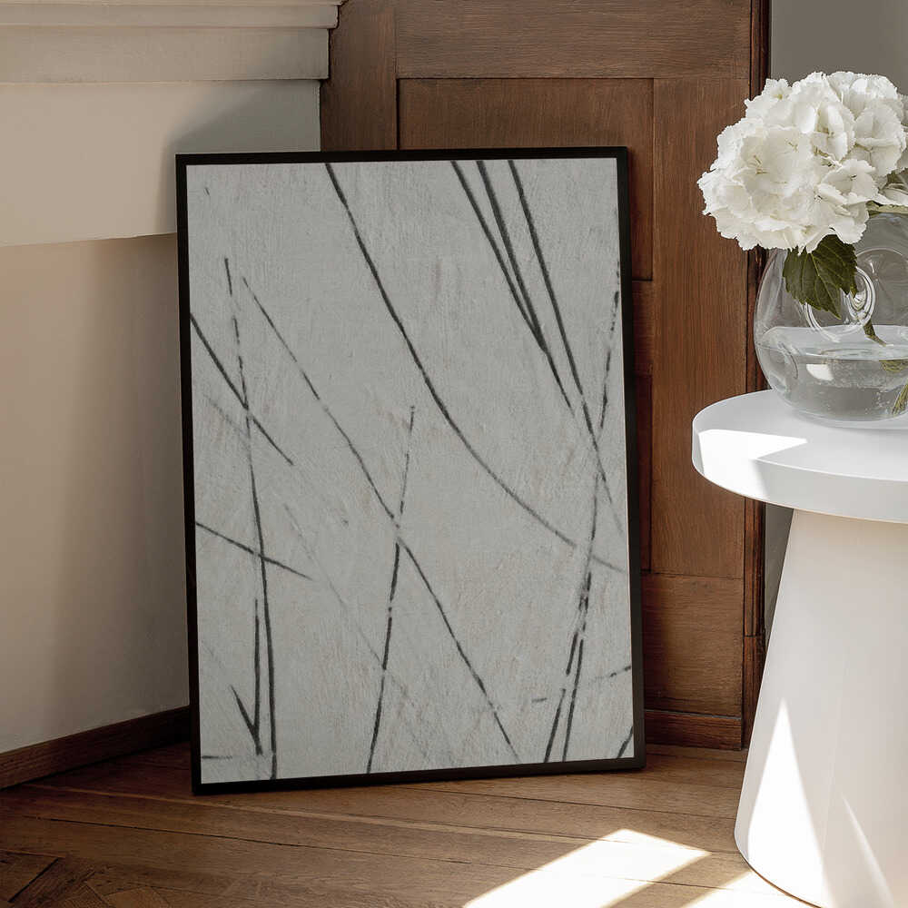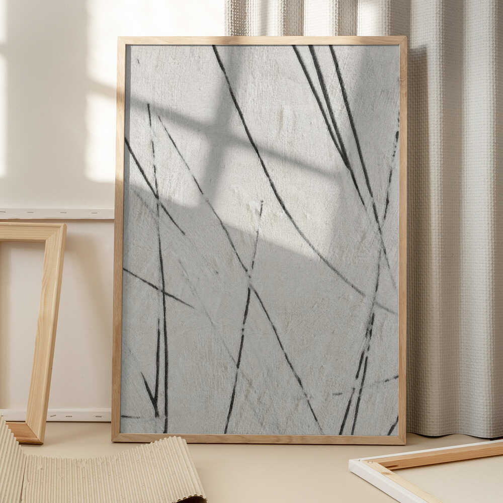 Tabloul înramat „Scratched #3”, creat de Alma, este disponibil în mai multe dimensiuni, cu ramă neagră, albă sau din lemn natur. Se potrivește perfect în orice încăpere.