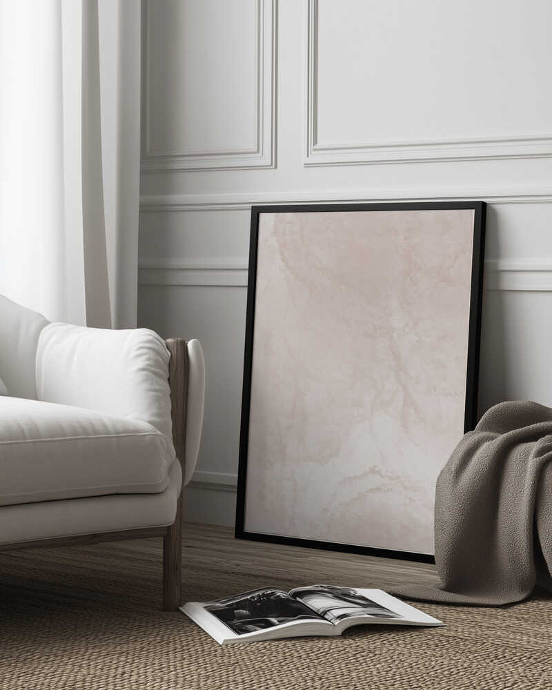 Tabloul înramat „Soft Texture”, creat de uplusmestudio, este disponibil în mai multe dimensiuni, cu ramă neagră, albă sau din lemn natur. Se potrivește perfect în orice încăpere.