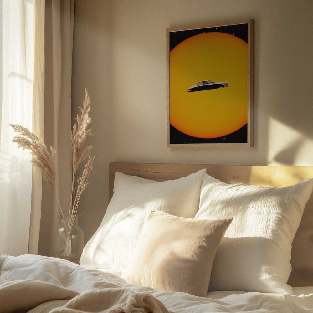 Tabloul înramat „Space Chase”, creat de Taudalpoi, este disponibil în mai multe dimensiuni, cu ramă neagră, albă sau din lemn natur. Se potrivește perfect în orice încăpere.