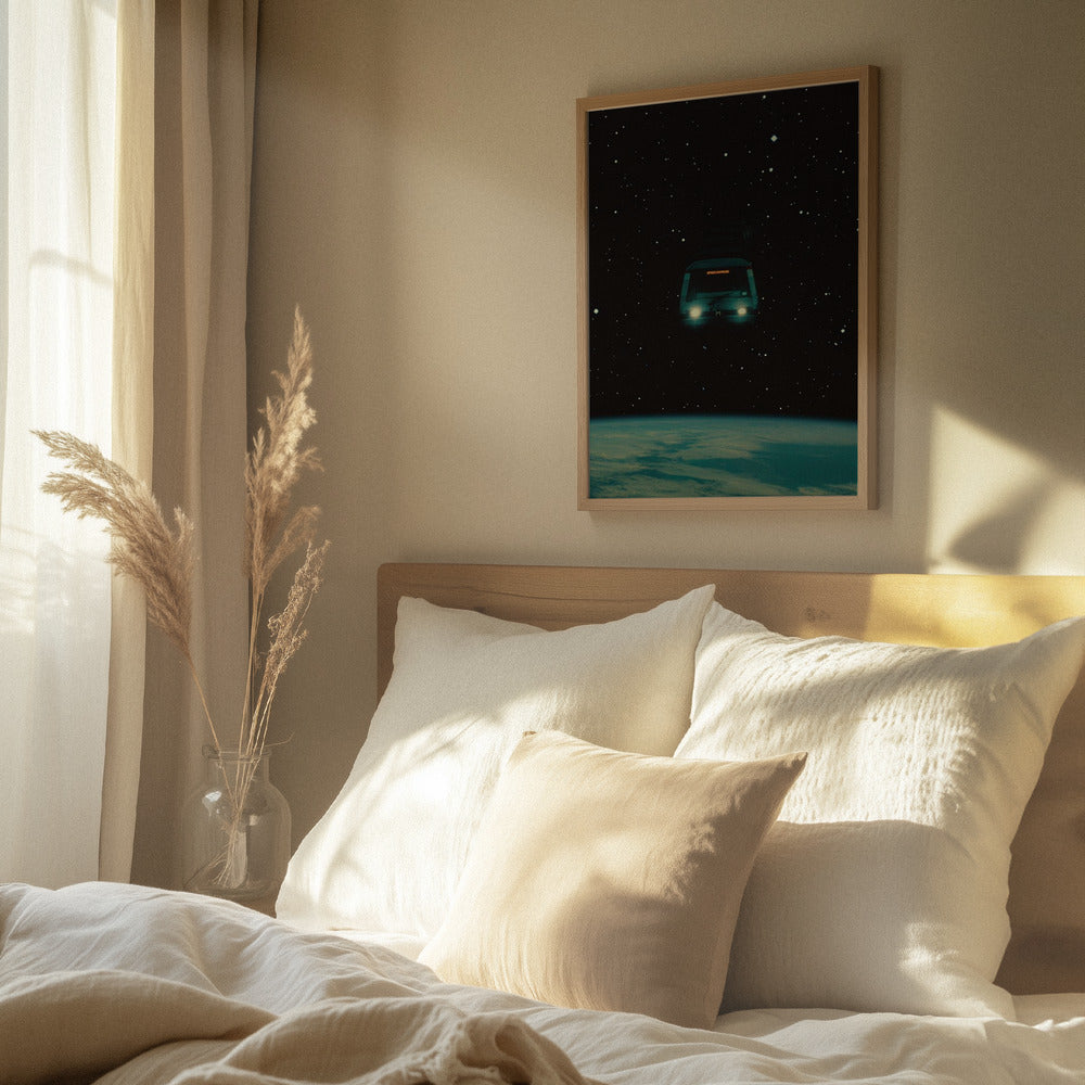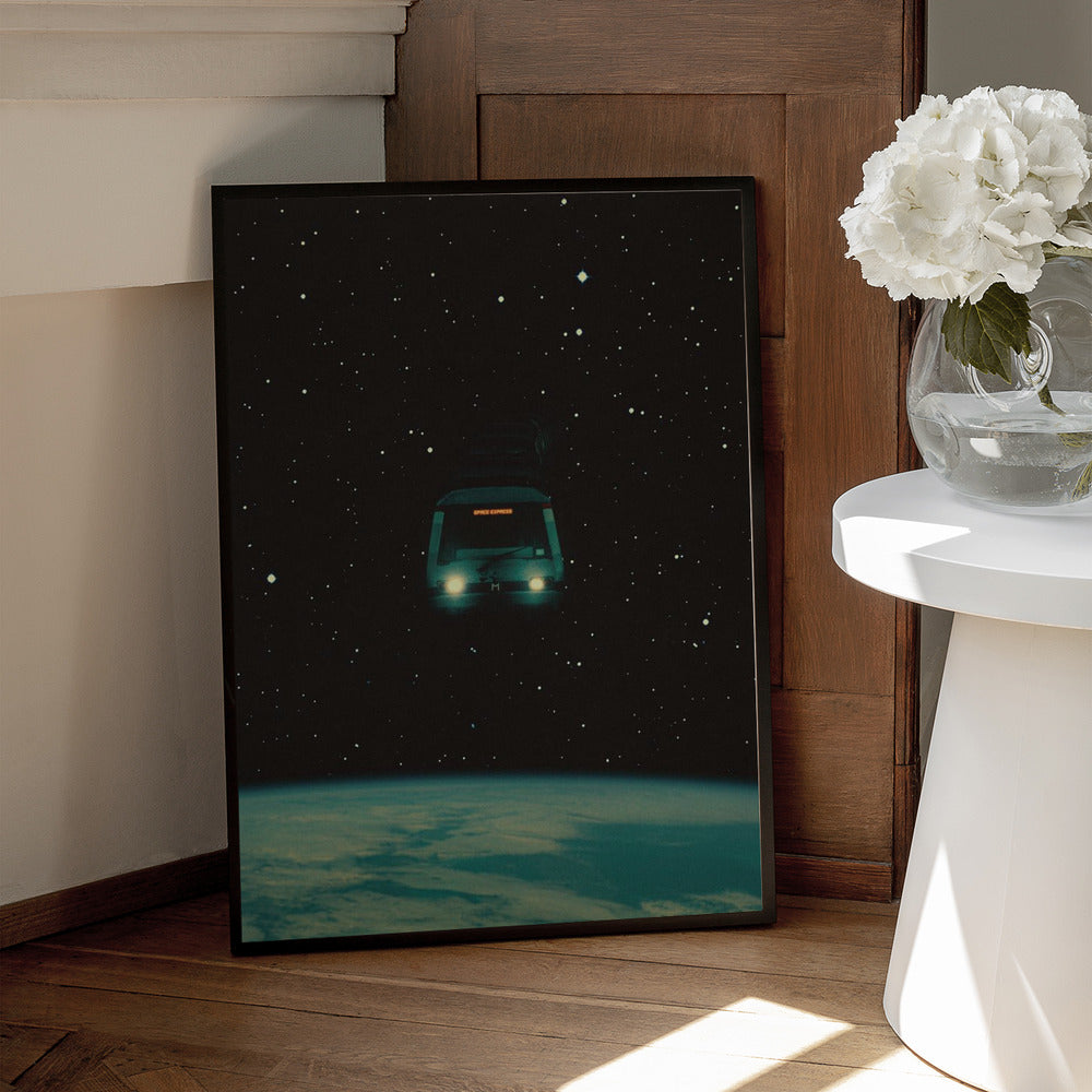 Tabloul înramat „Space Express”, creat de Taudalpoi, este disponibil în mai multe dimensiuni, cu ramă neagră, albă sau din lemn natur. Se potrivește perfect în orice încăpere.