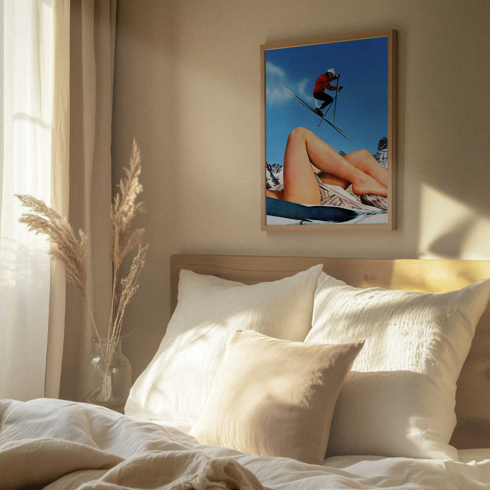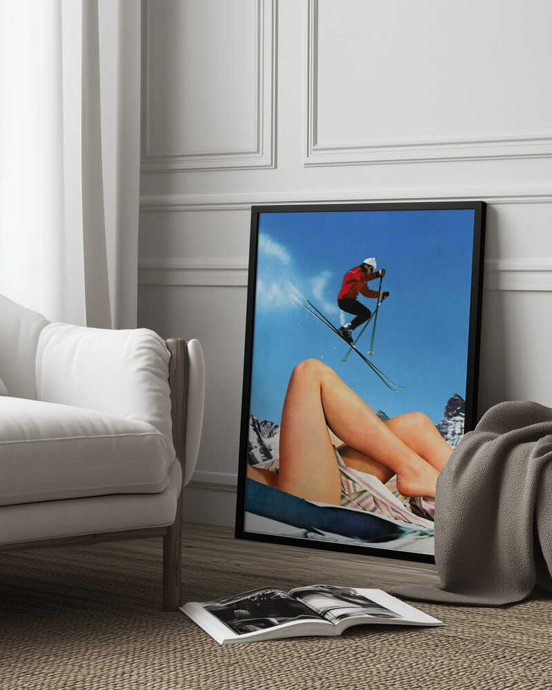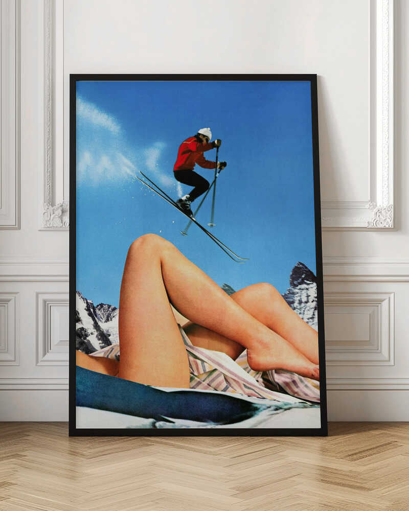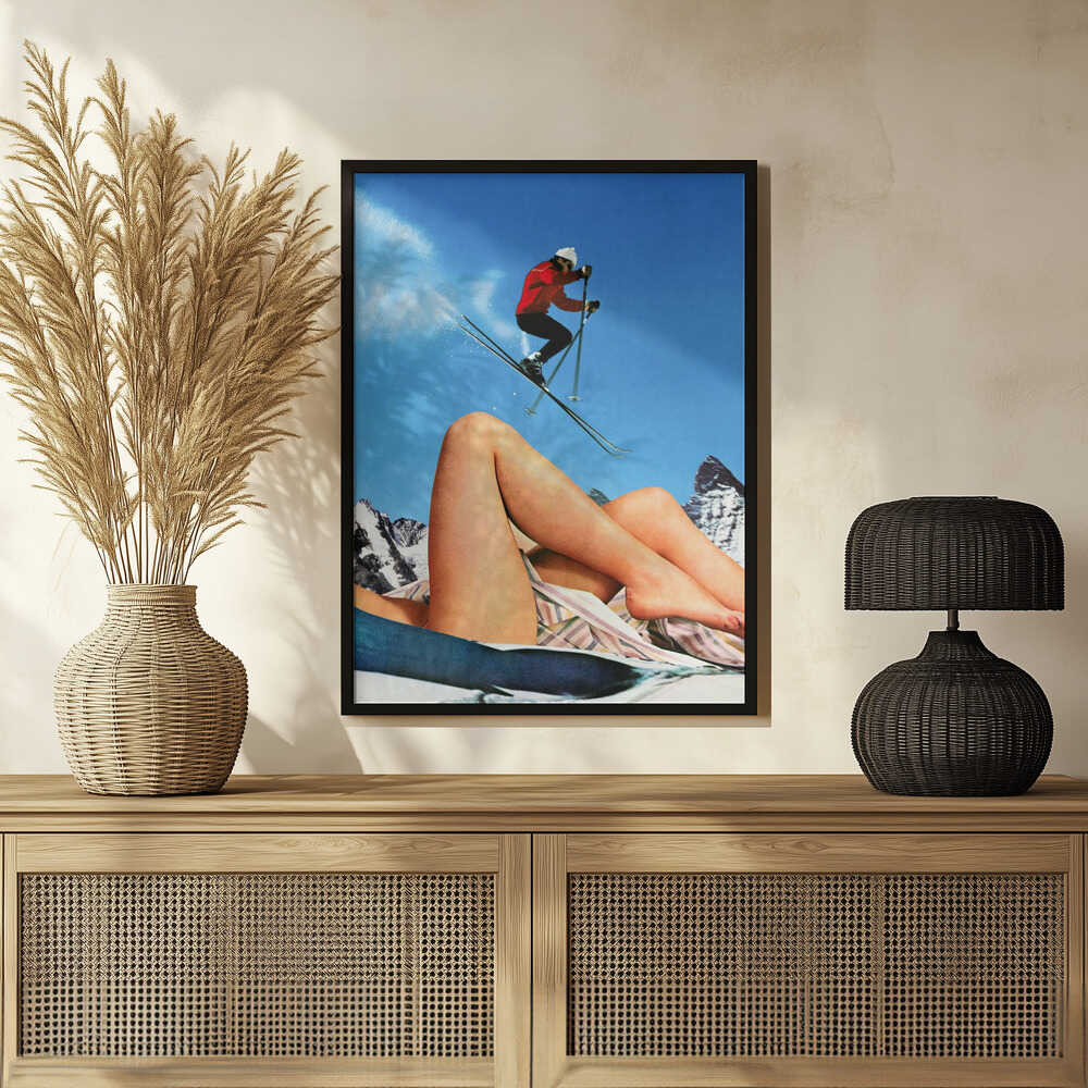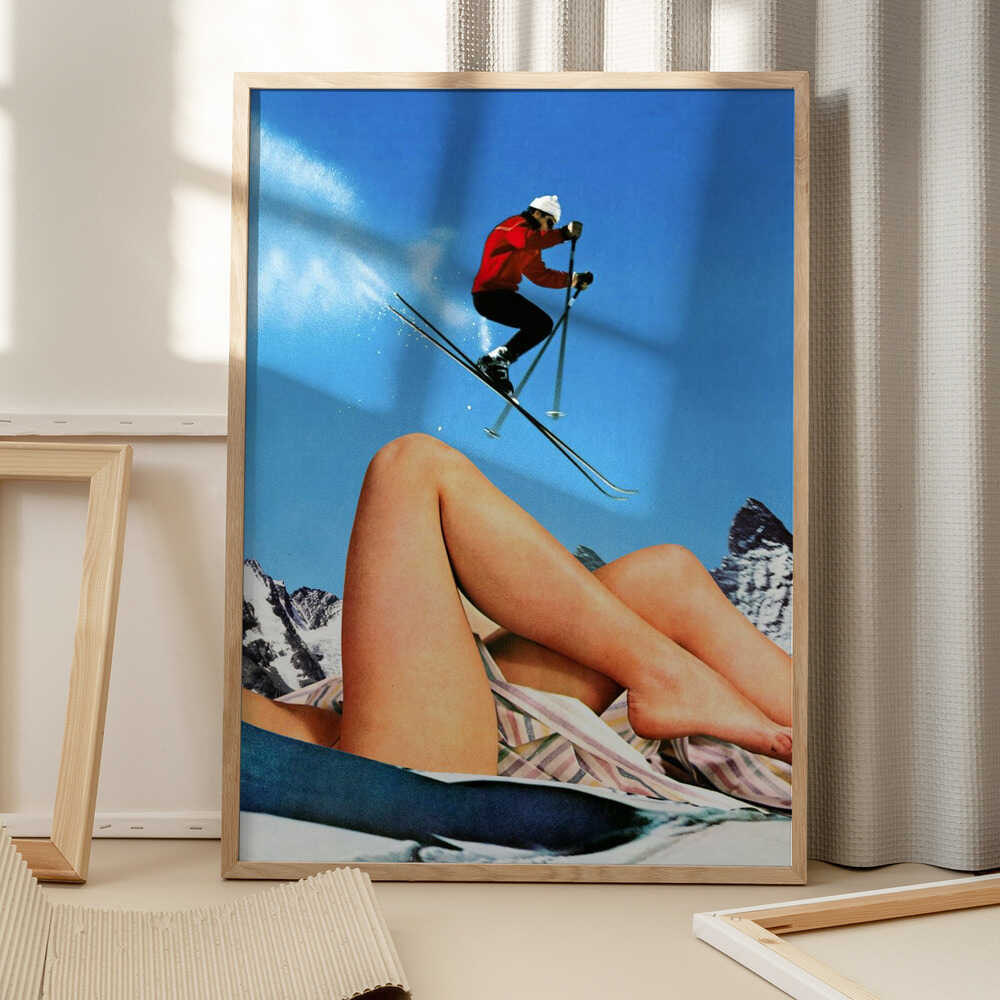 Tabloul înramat „The Big Jump”, creat de Taudalpoi, este disponibil în mai multe dimensiuni, cu ramă neagră, albă sau din lemn natur. Se potrivește perfect în orice încăpere.
