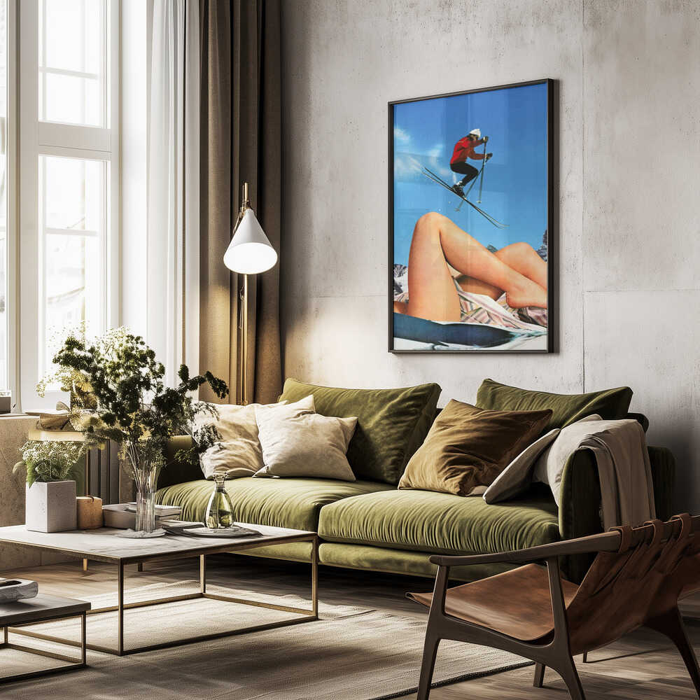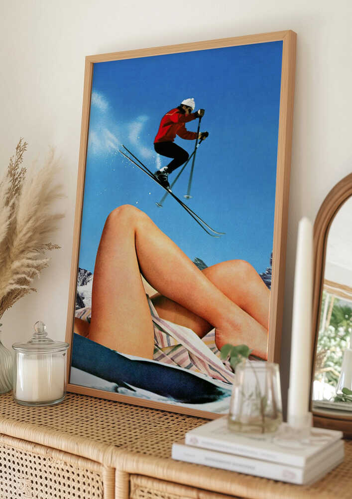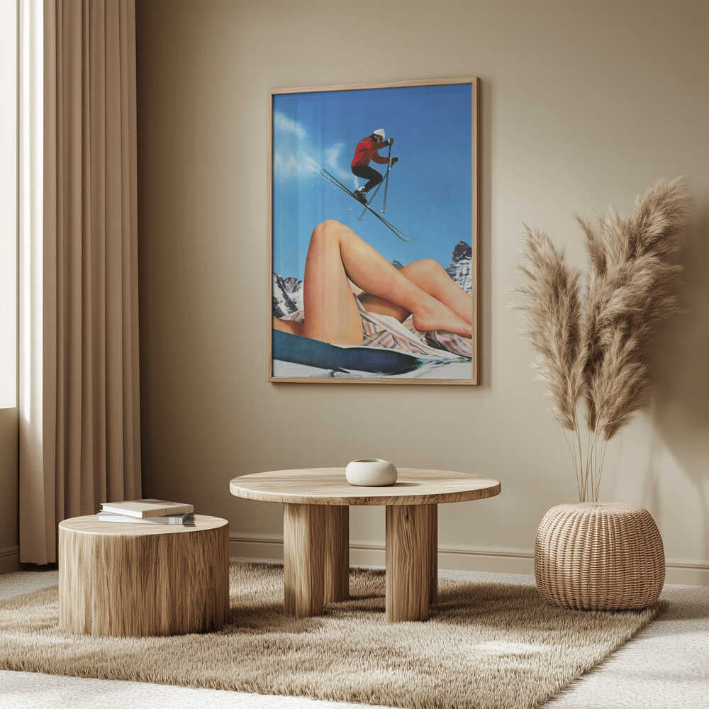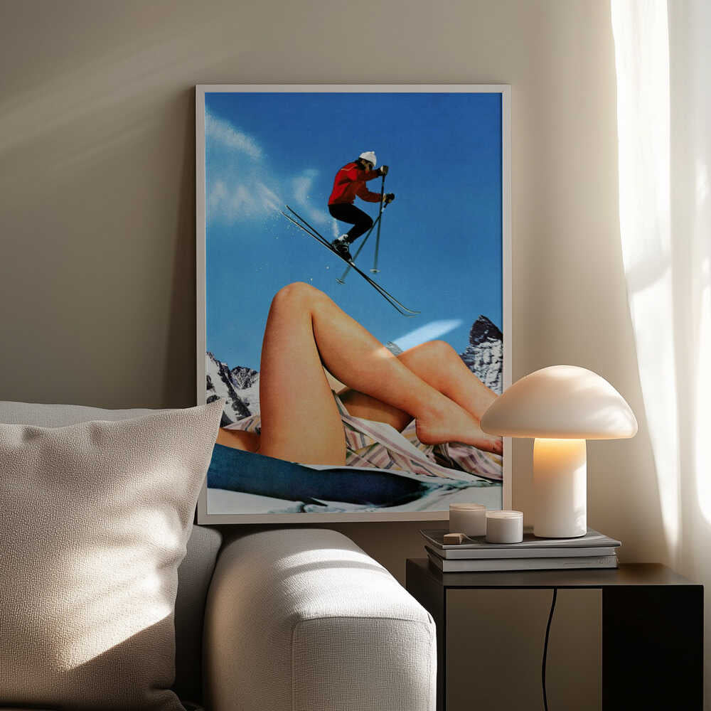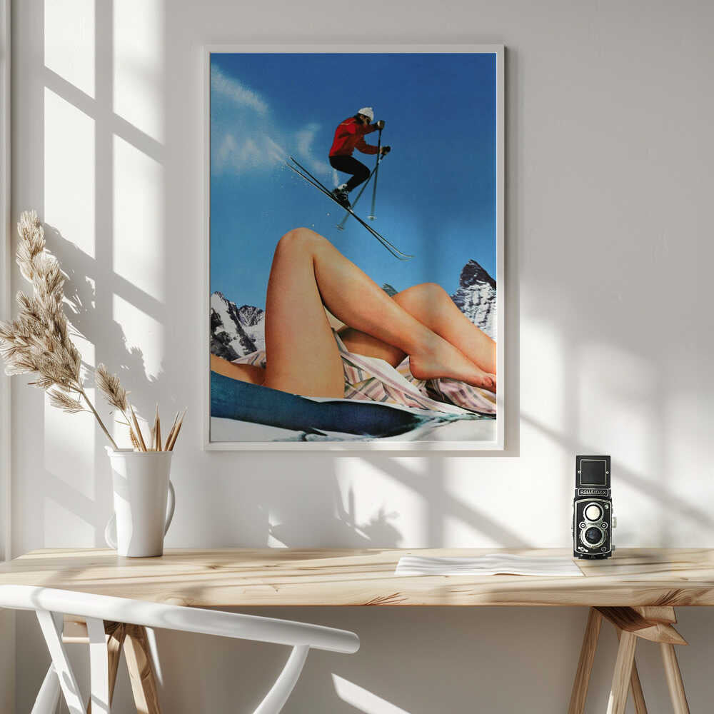Tabloul înramat „The Big Jump”, creat de Taudalpoi, este disponibil în mai multe dimensiuni, cu ramă neagră, albă sau din lemn natur. Se potrivește perfect în orice încăpere.
