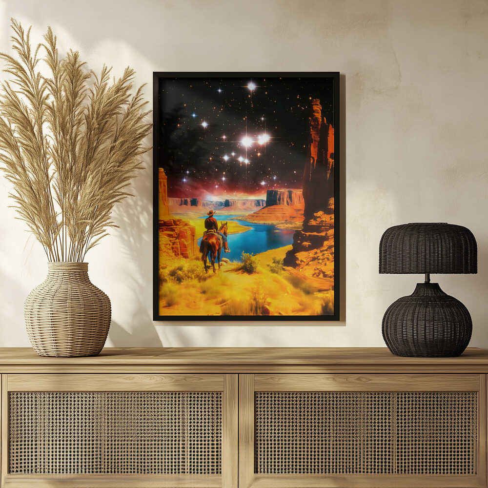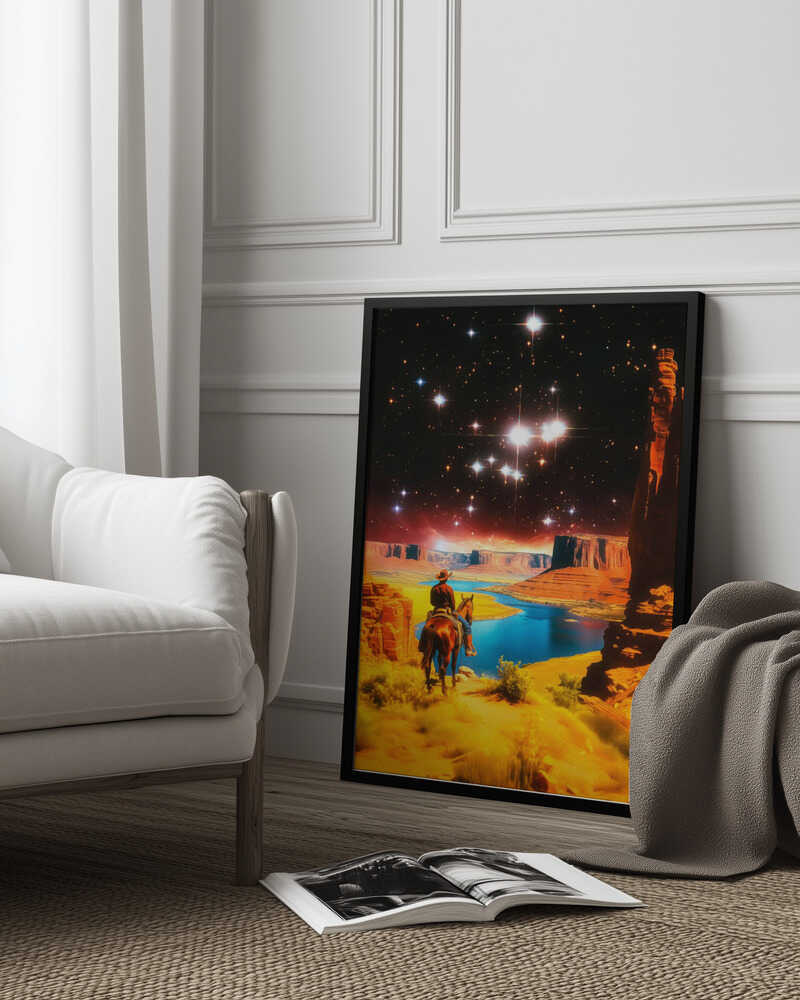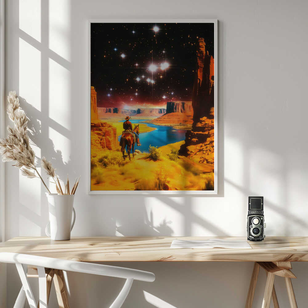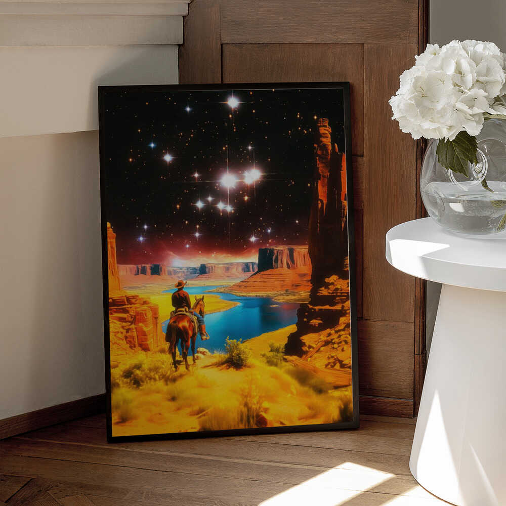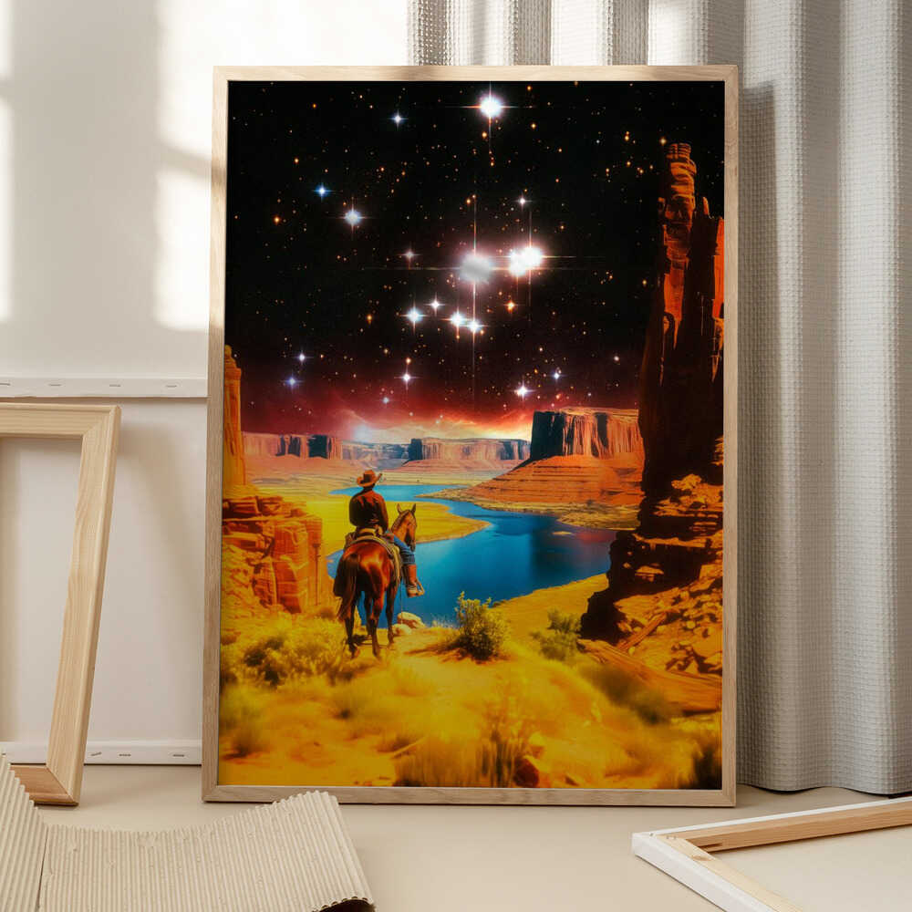 Tabloul înramat „The Cosmic Frontier”, creat de Taudalpoi, este disponibil în mai multe dimensiuni, cu ramă neagră, albă sau din lemn natur. Se potrivește perfect în orice încăpere.