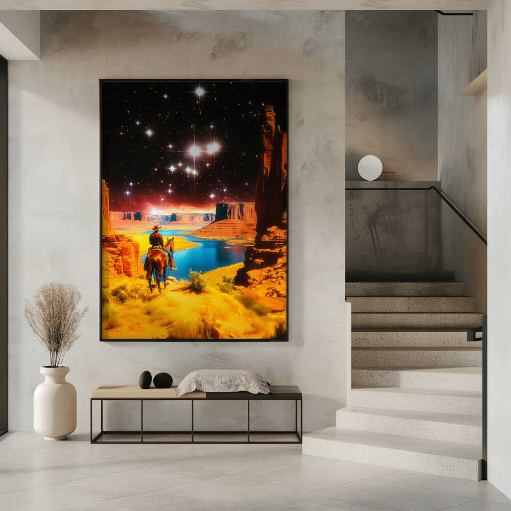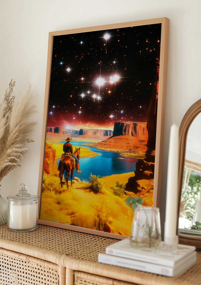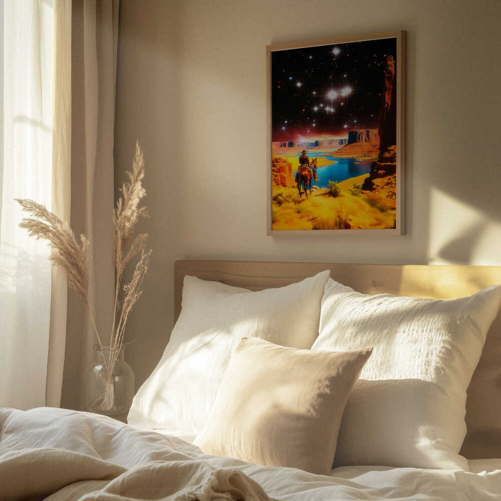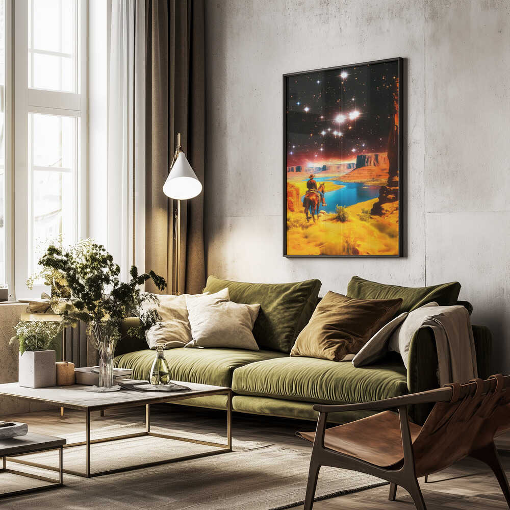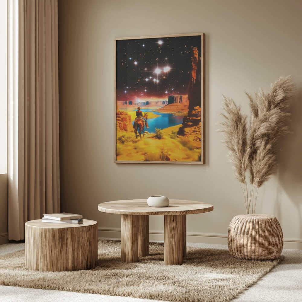 Tabloul înramat „The Cosmic Frontier”, creat de Taudalpoi, este disponibil în mai multe dimensiuni, cu ramă neagră, albă sau din lemn natur. Se potrivește perfect în orice încăpere.