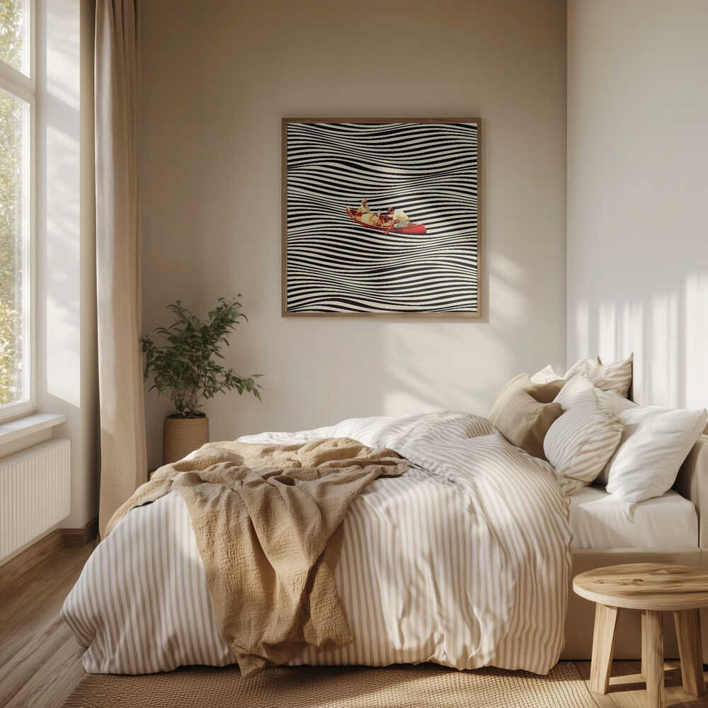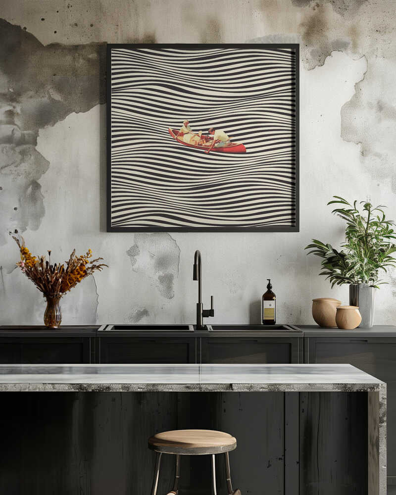 Tabloul înramat „The Real Boat Trip”, creat de Taudalpoi, este disponibil în mai multe dimensiuni, cu ramă neagră, albă sau din lemn natur. Se potrivește perfect în orice încăpere.