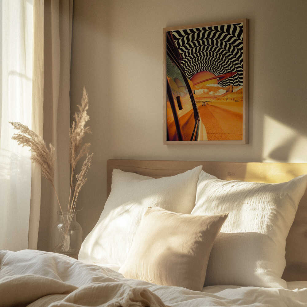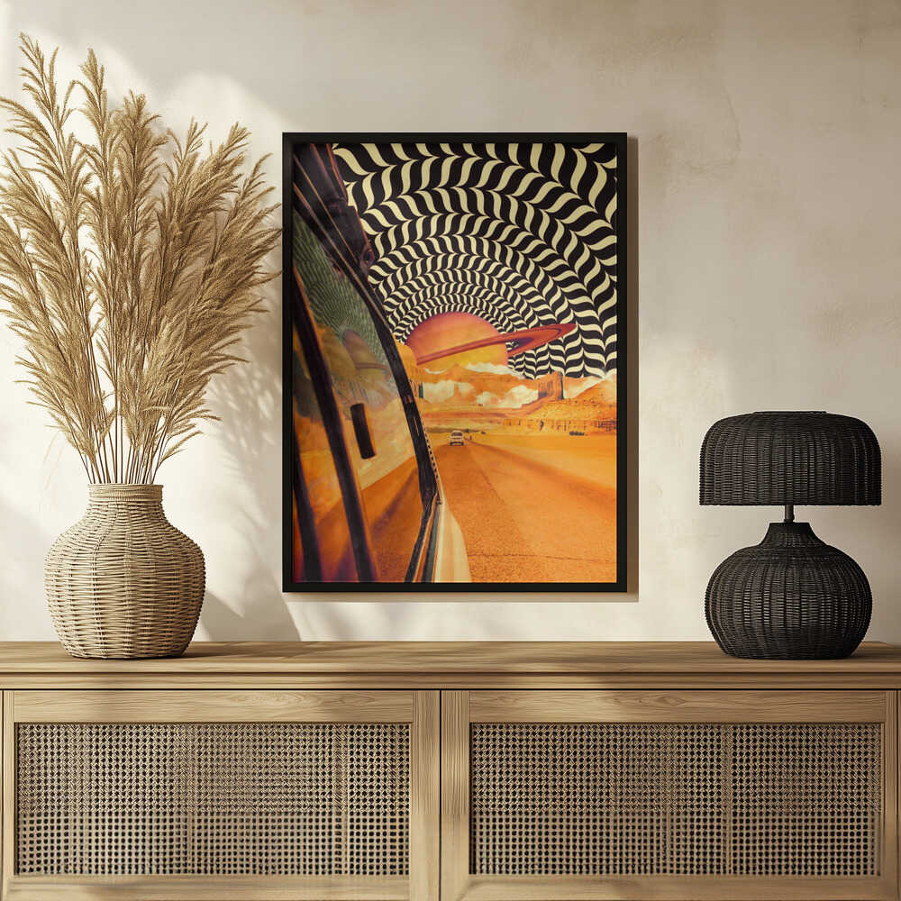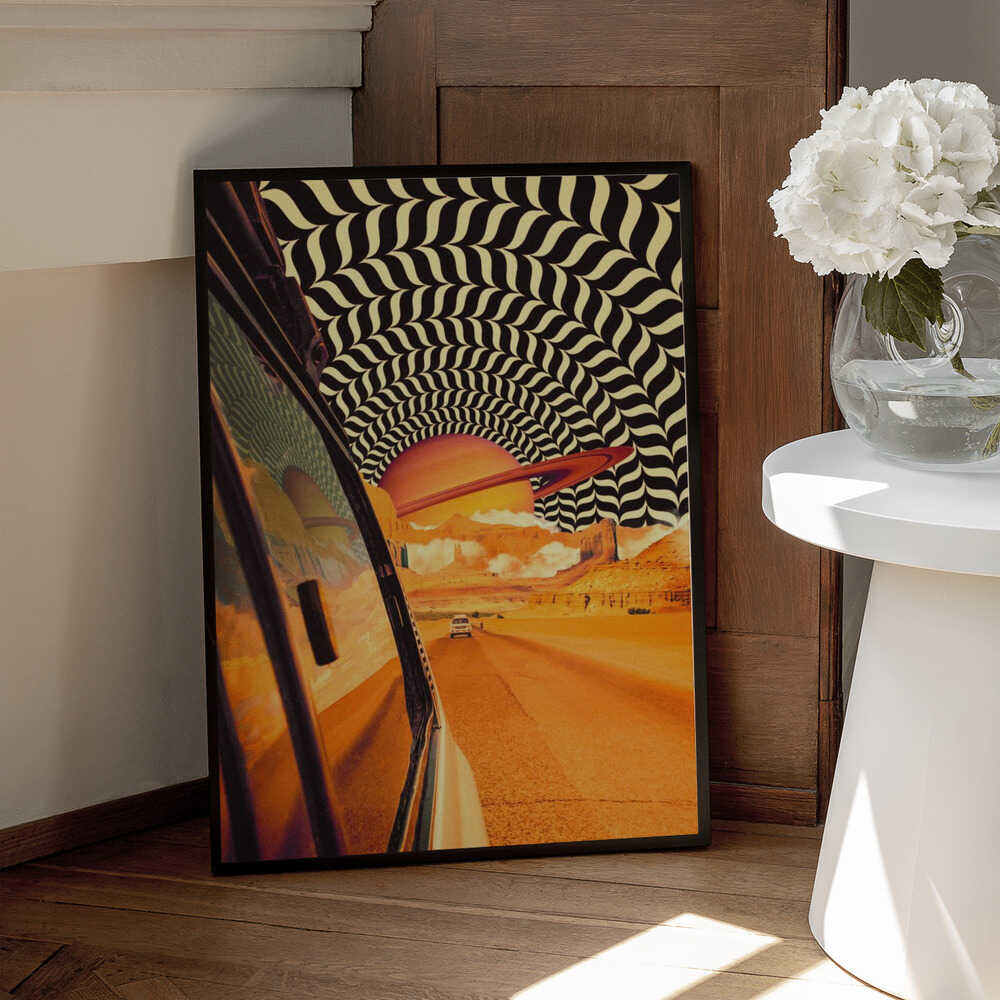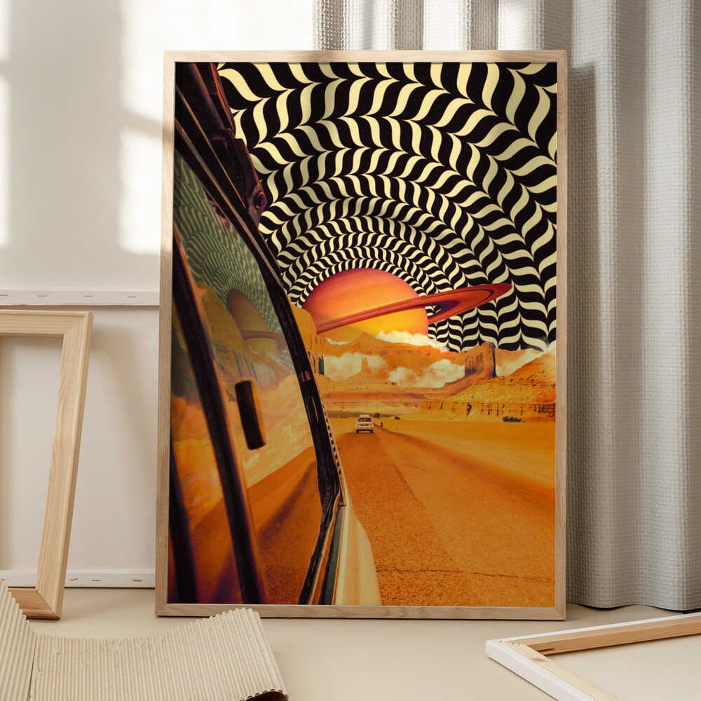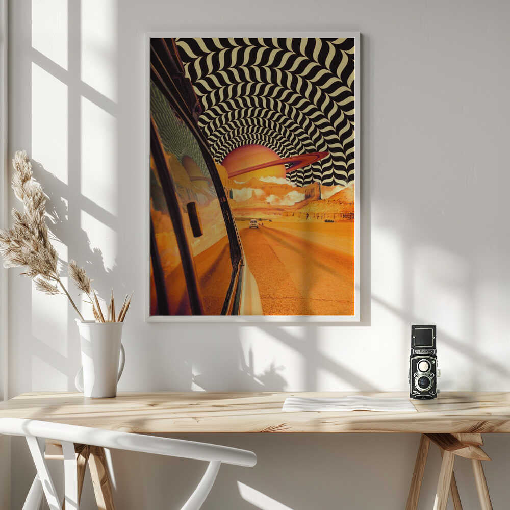 Tabloul înramat „The Real Road Trip II”, creat de Taudalpoi, este disponibil în mai multe dimensiuni, cu ramă neagră, albă sau din lemn natur. Se potrivește perfect în orice încăpere.