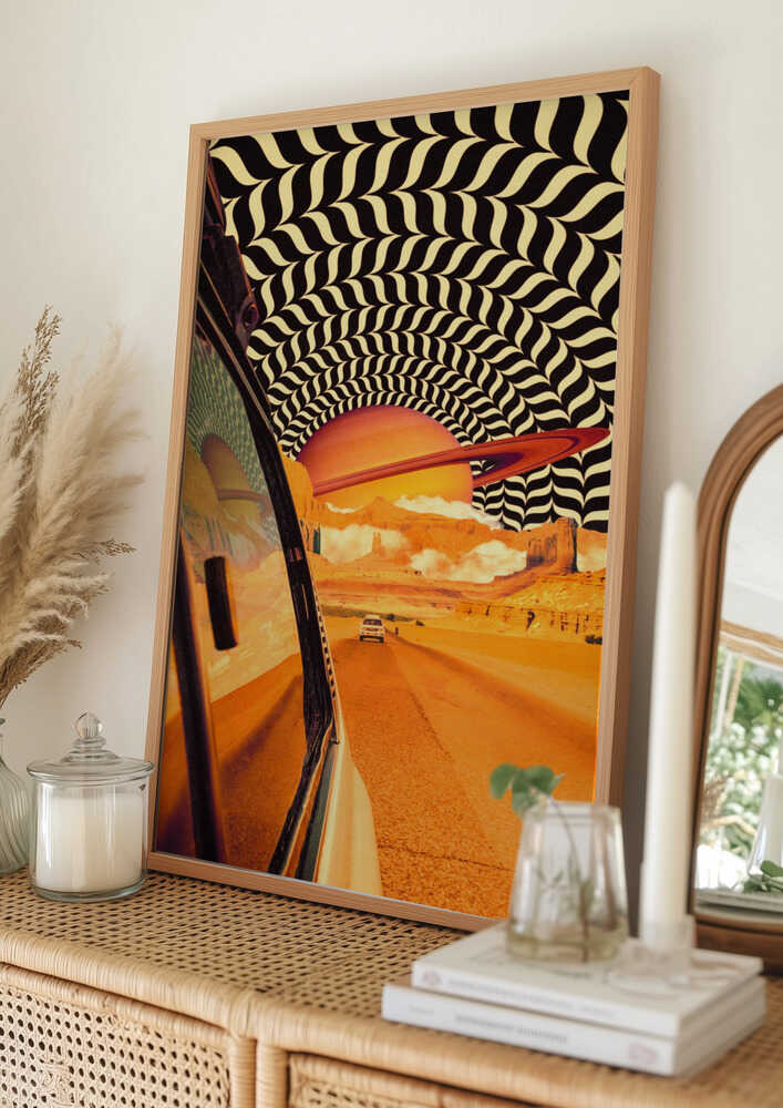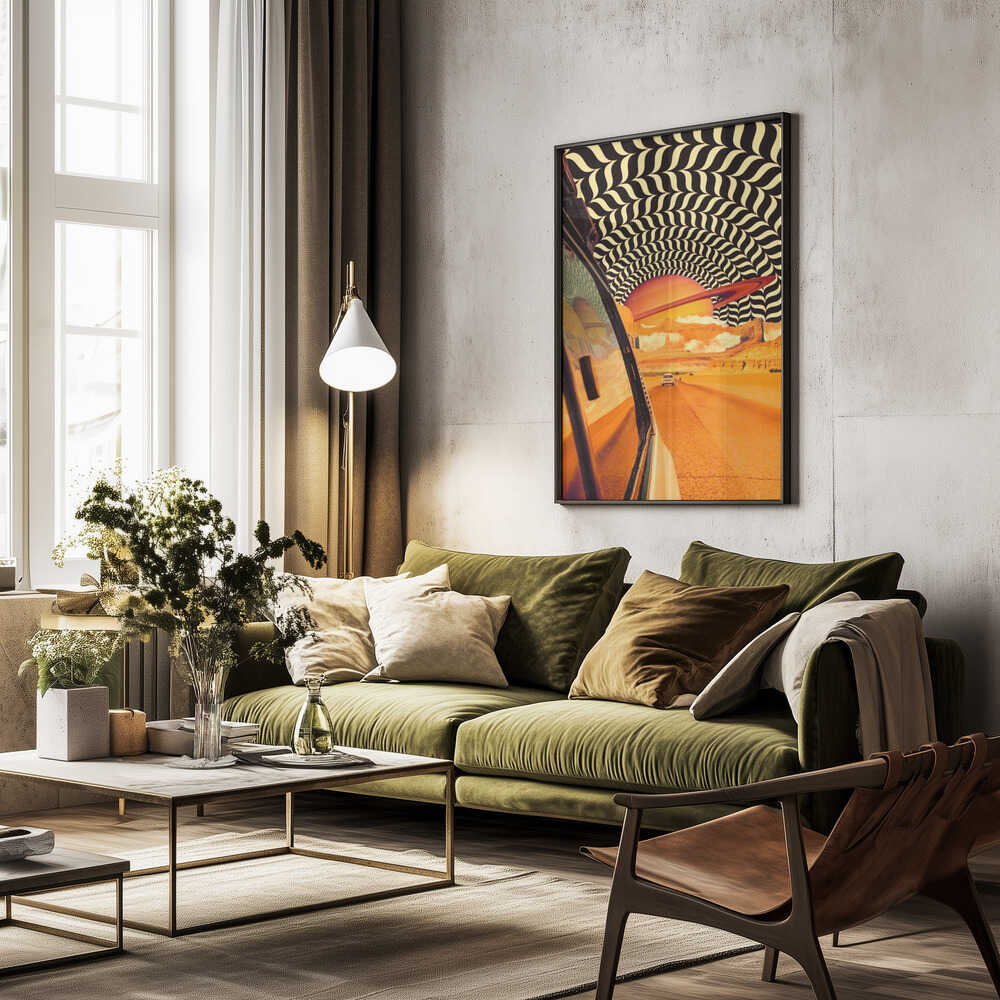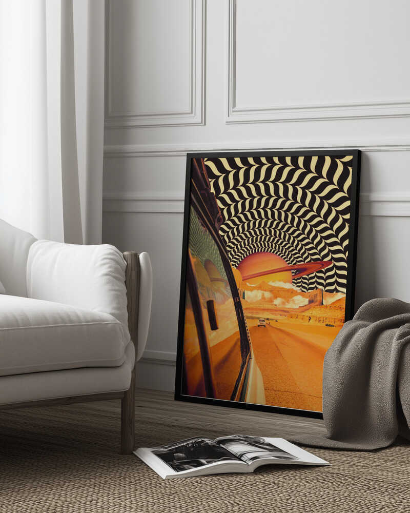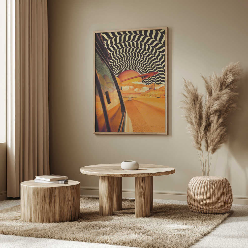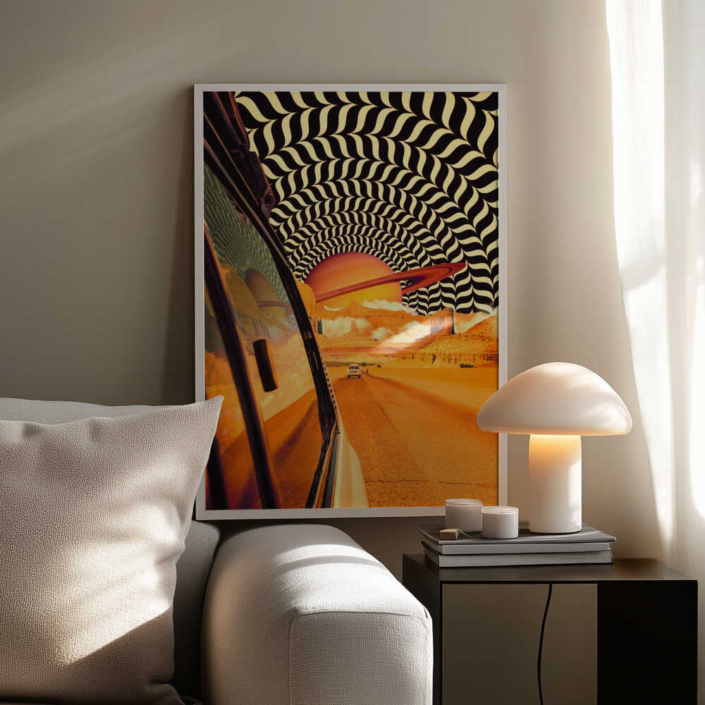 Tabloul înramat „The Real Road Trip II”, creat de Taudalpoi, este disponibil în mai multe dimensiuni, cu ramă neagră, albă sau din lemn natur. Se potrivește perfect în orice încăpere.