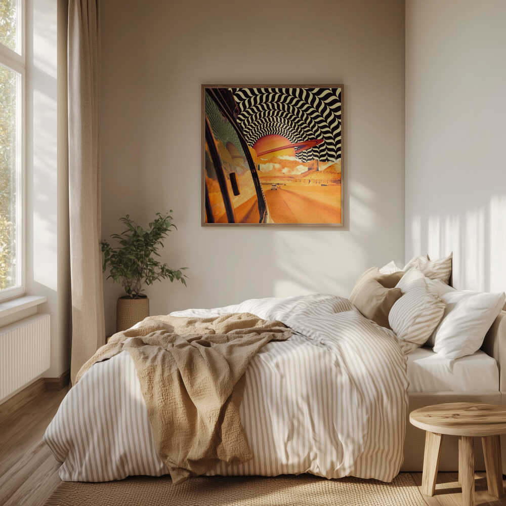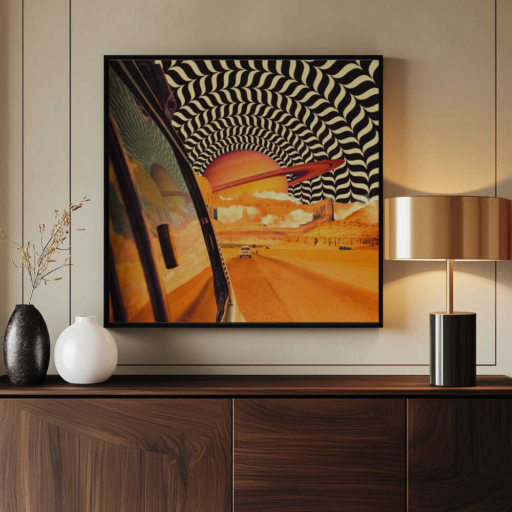 Tabloul înramat „The Real Road Trip II”, creat de Taudalpoi, este disponibil în mai multe dimensiuni, cu ramă neagră, albă sau din lemn natur. Se potrivește perfect în orice încăpere.
