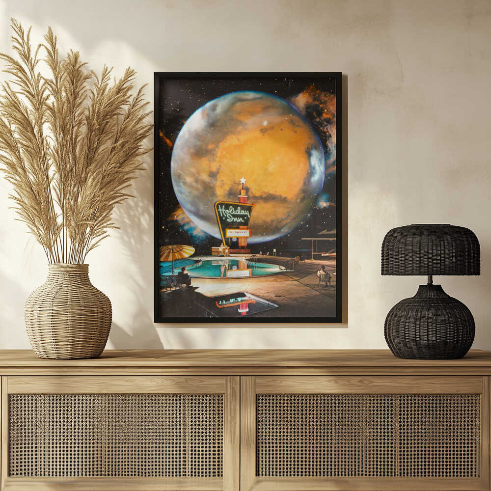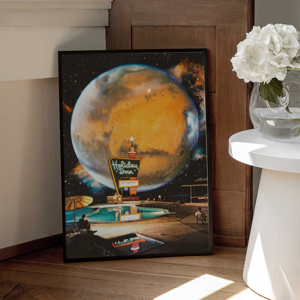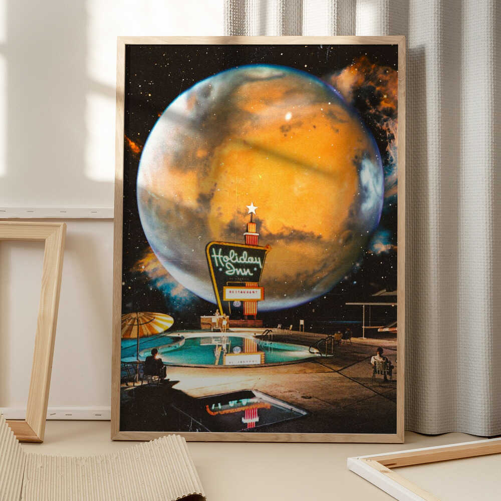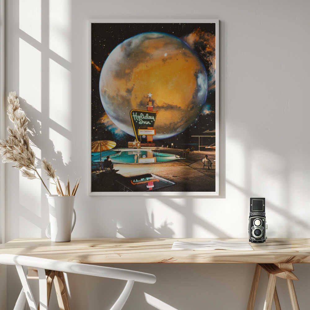 Tabloul înramat „The Space Hotel”, creat de Taudalpoi, este disponibil în mai multe dimensiuni, cu ramă neagră, albă sau din lemn natur. Se potrivește perfect în orice încăpere.
