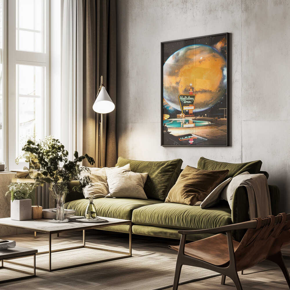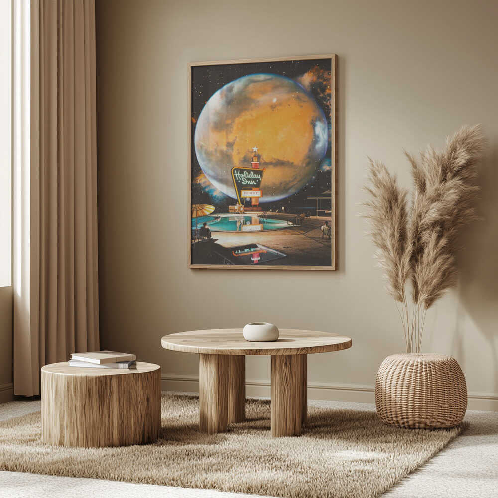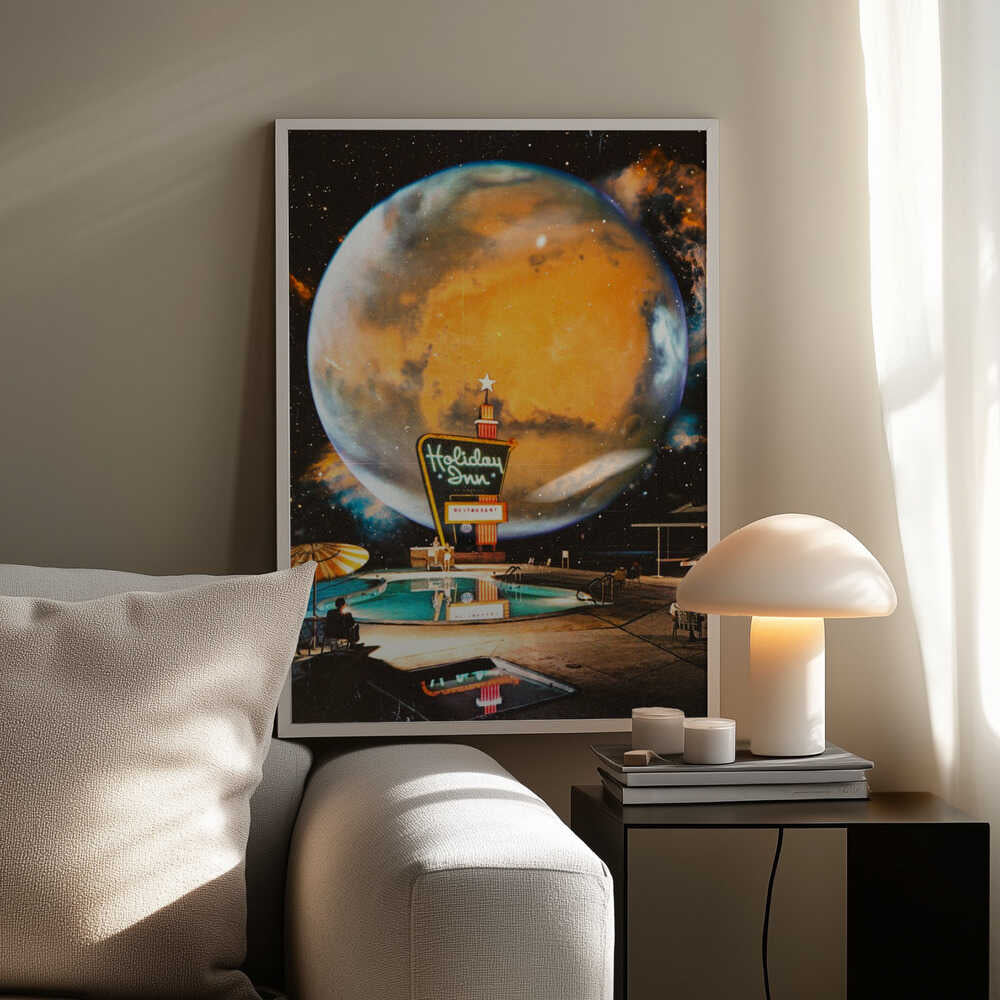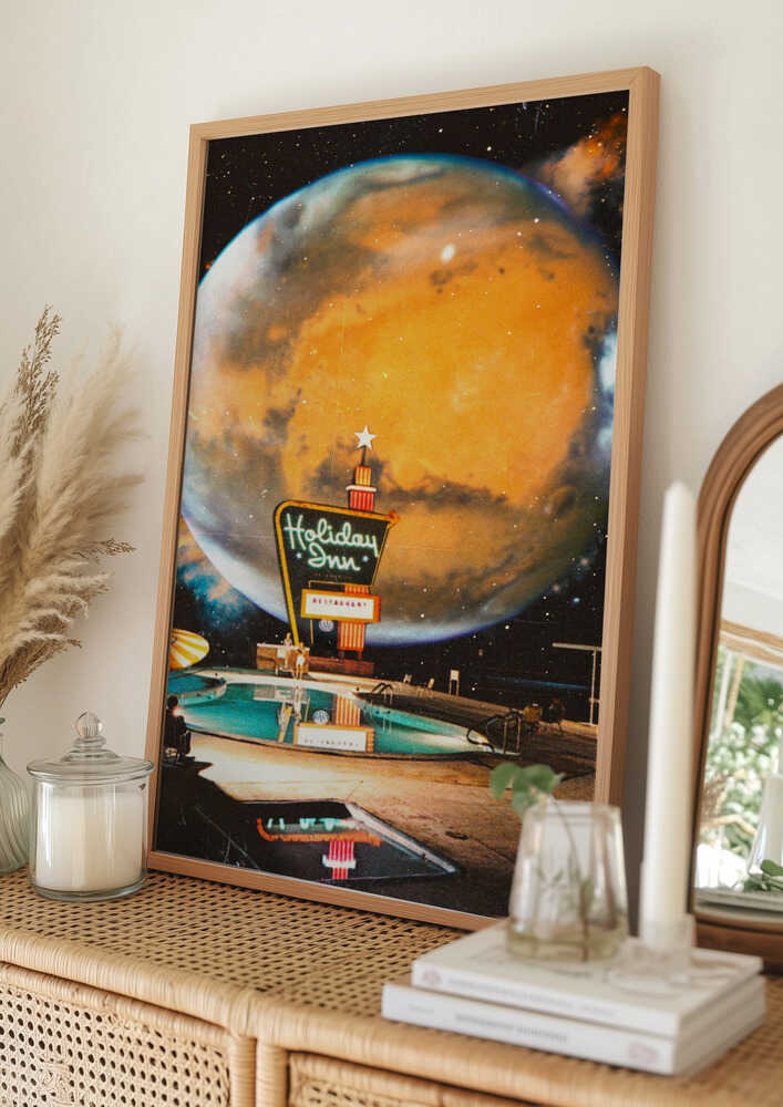 Tabloul înramat „The Space Hotel”, creat de Taudalpoi, este disponibil în mai multe dimensiuni, cu ramă neagră, albă sau din lemn natur. Se potrivește perfect în orice încăpere.