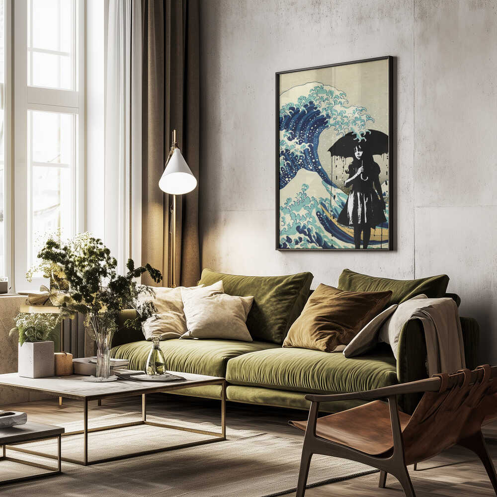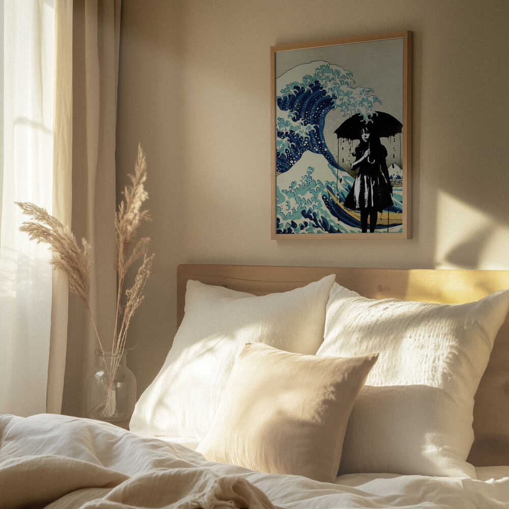 Tabloul înramat „Under the Wave”, creat de Dikhotomy, este disponibil în mai multe dimensiuni, cu ramă neagră, albă sau din lemn natur. Se potrivește perfect în orice încăpere.