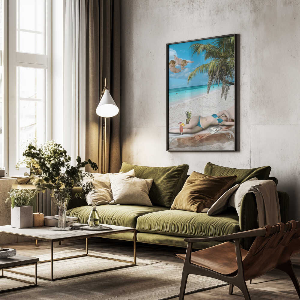 Tabloul înramat „Venus On Beach”, creat de Dikhotomy, este disponibil în mai multe dimensiuni, cu ramă neagră, albă sau din lemn natur. Se potrivește perfect în orice încăpere.