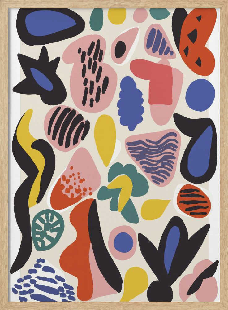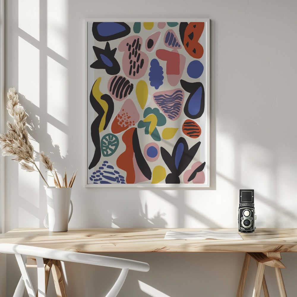 Tabloul înramat „Vibrant Abstractions”, creat de Treechild, este disponibil în mai multe dimensiuni, cu ramă neagră, albă sau din lemn natur. Se potrivește perfect în orice încăpere.