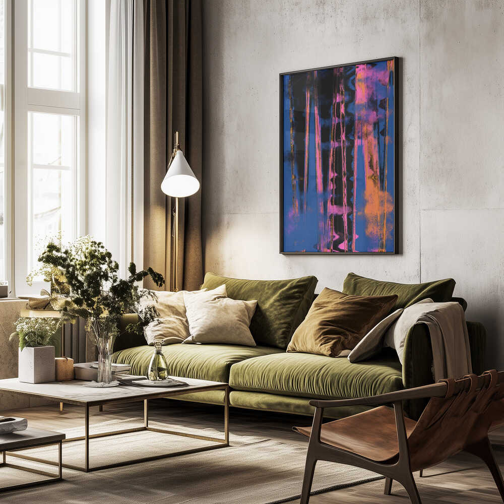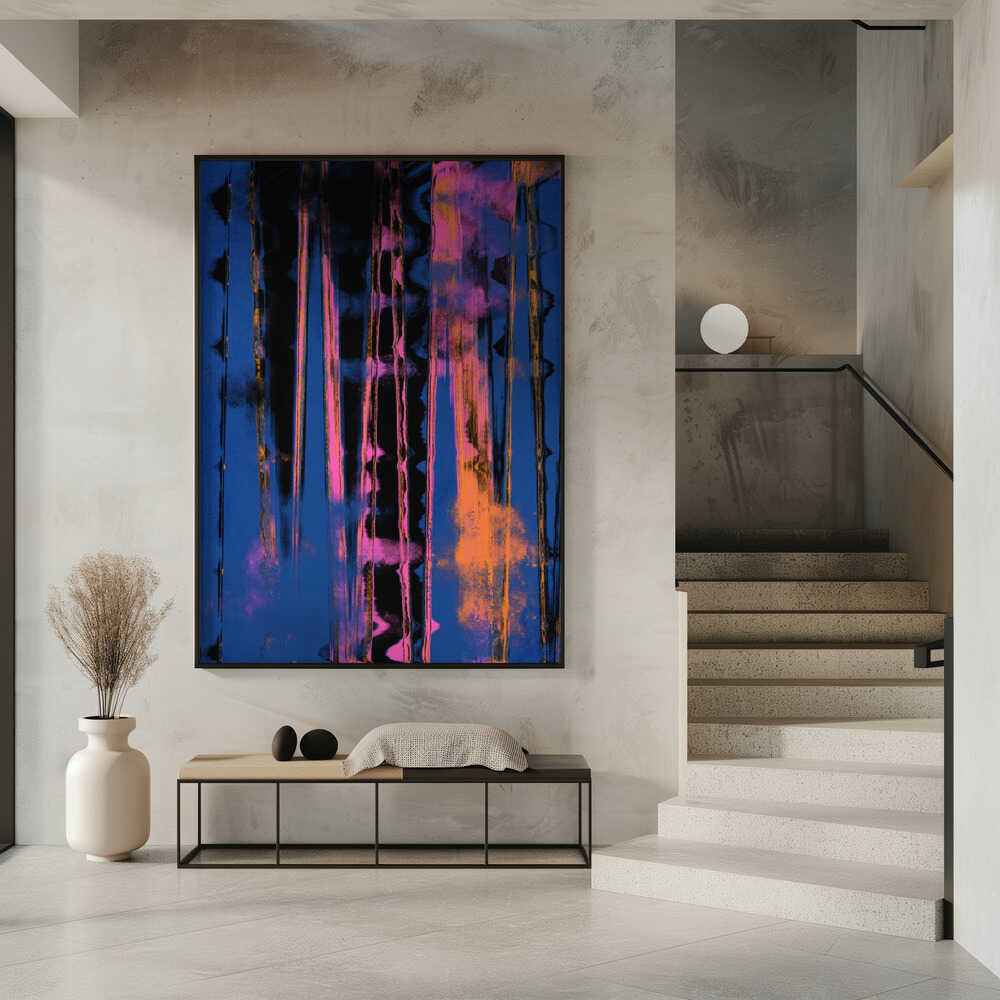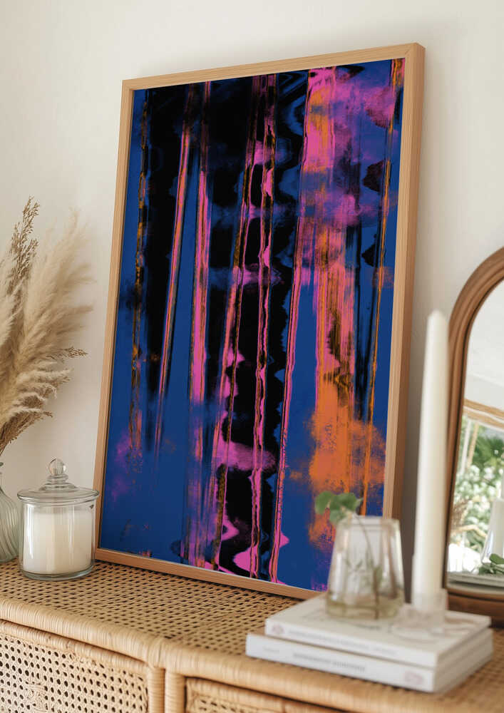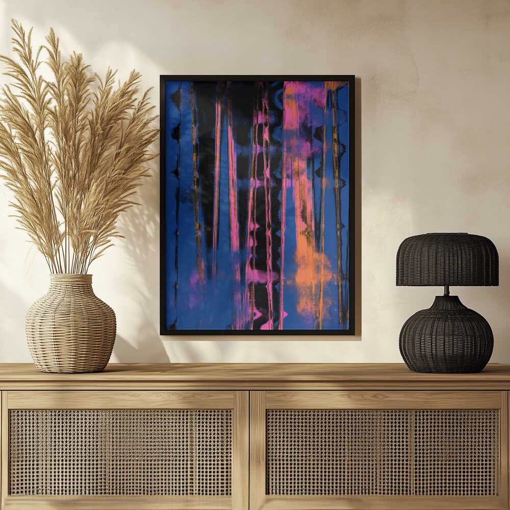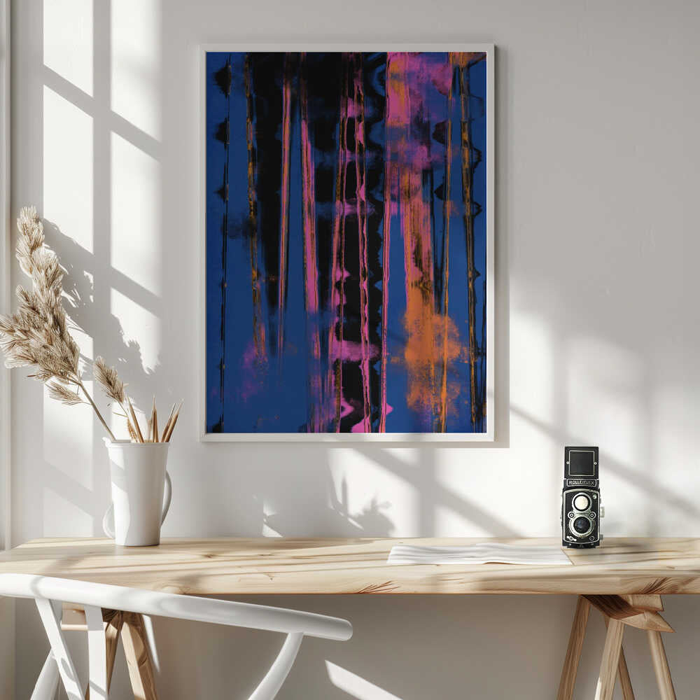 Tabloul înramat „Vibrant Nightfall”, creat de Treechild, este disponibil în mai multe dimensiuni, cu ramă neagră, albă sau din lemn natur. Se potrivește perfect în orice încăpere.