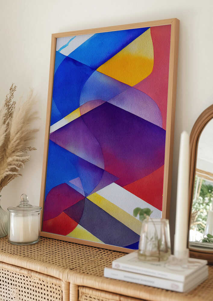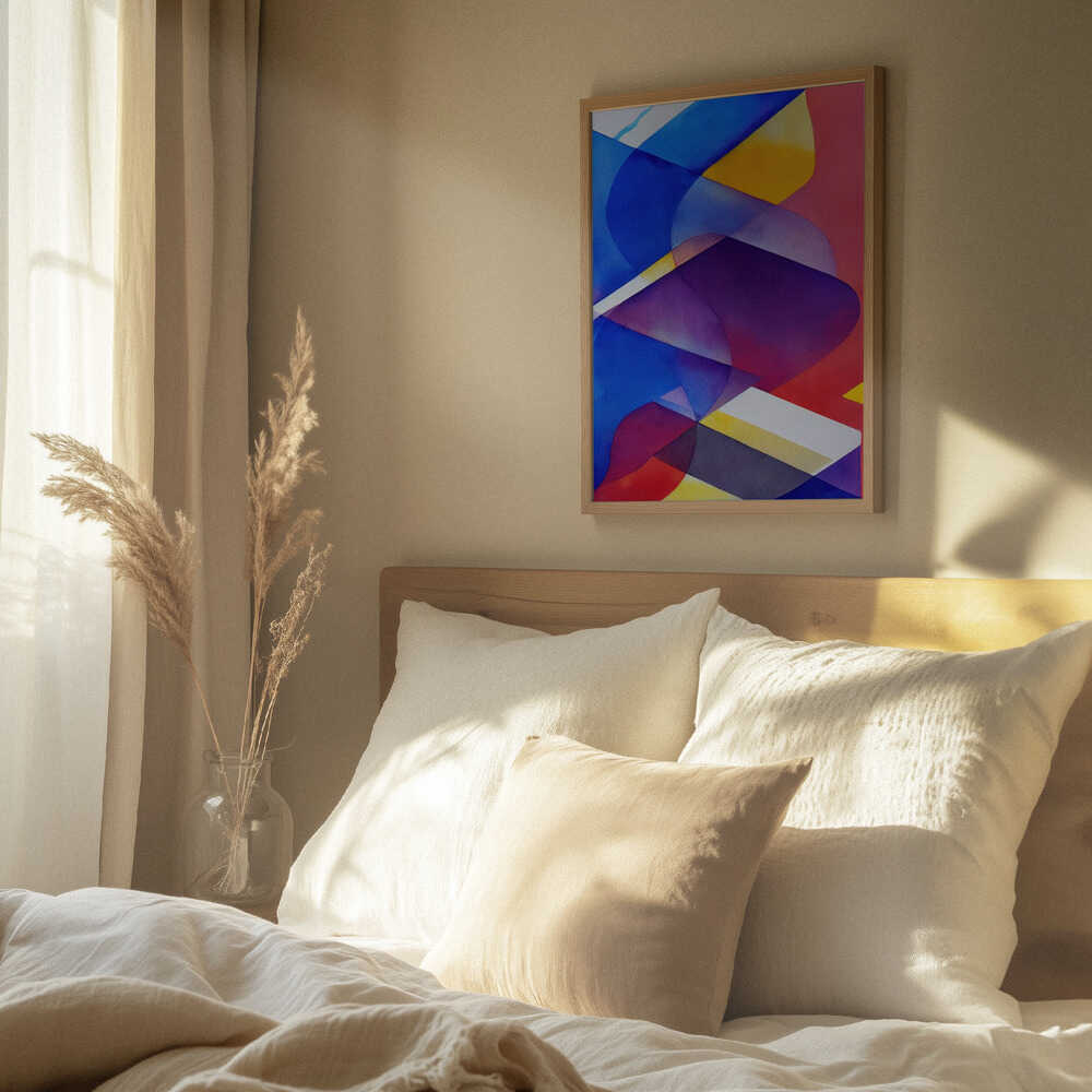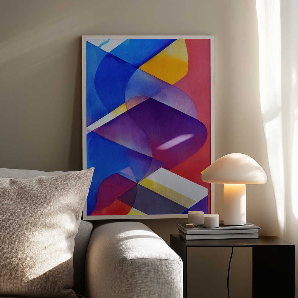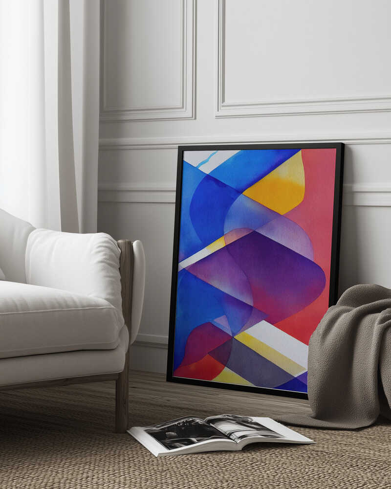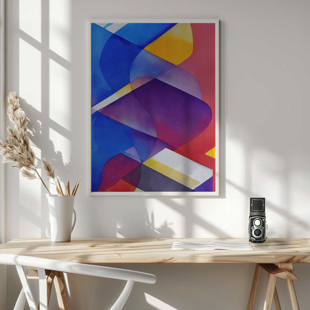 Tabloul înramat „Vibrant Overlap”, creat de Mauro, este disponibil în mai multe dimensiuni, cu ramă neagră, albă sau din lemn natur. Se potrivește perfect în orice încăpere.