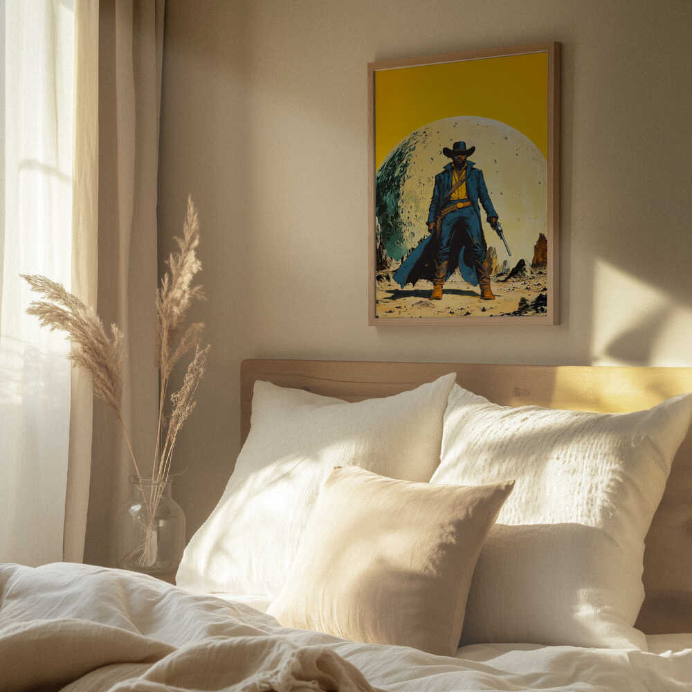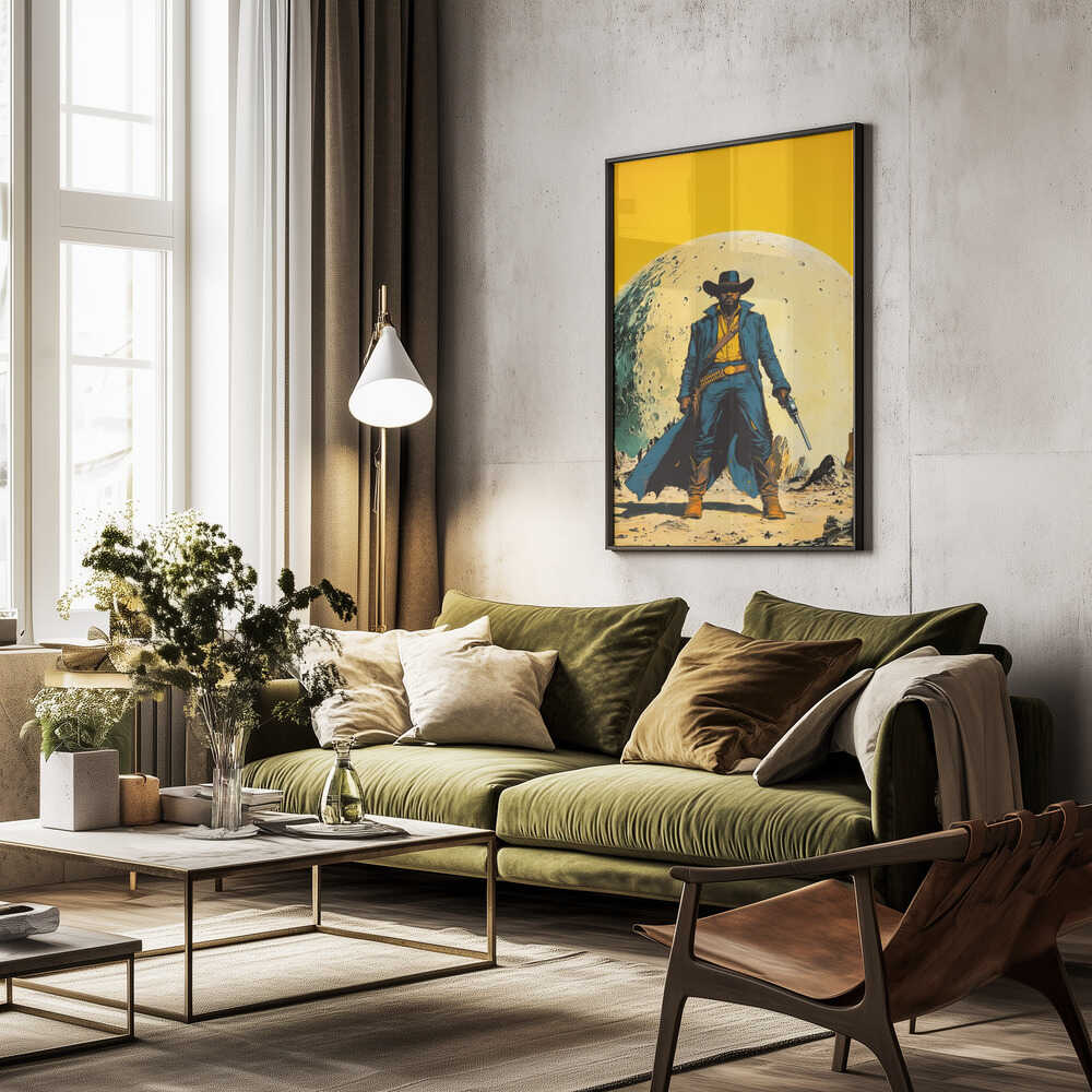 Tabloul înramat „Yellow Justice”, creat de Taudalpoi, este disponibil în mai multe dimensiuni, cu ramă neagră, albă sau din lemn natur. Se potrivește perfect în orice încăpere.